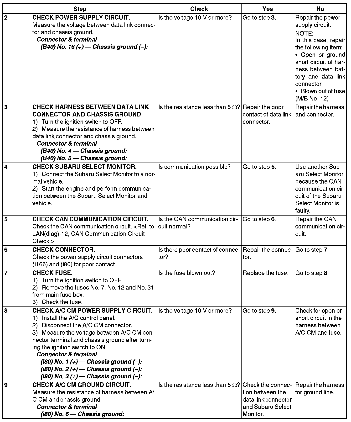 - Communication failure between Subaru Select Monitor and A/C CM