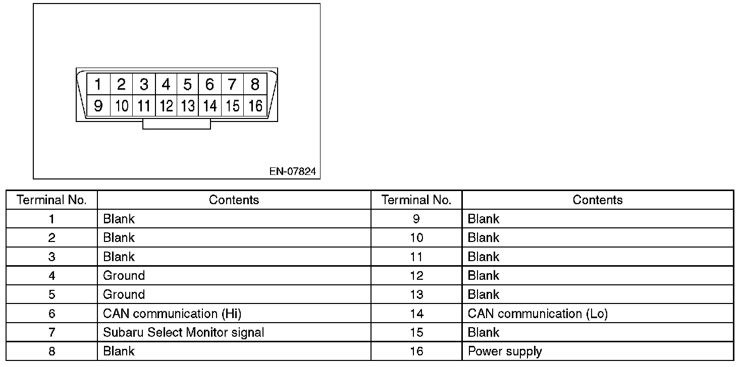 CAUTION: Do not connect any scan tools other than Subaru Select Monitor or general scan tool because the circuit for Subaru Select Monitor may be damaged.