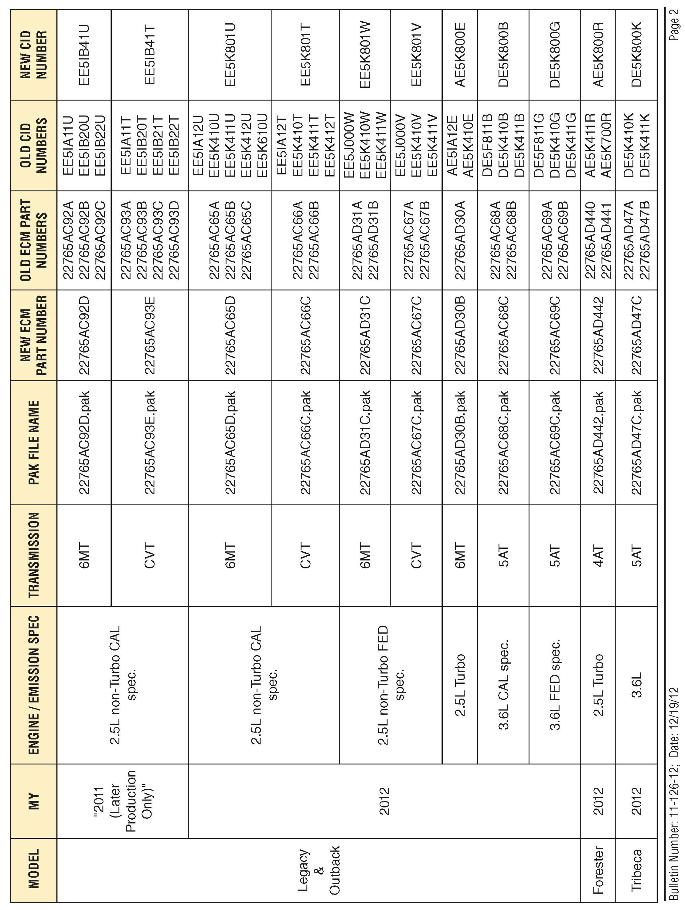 "2011 Later Production Only" vehicles can be identified by the "OLD CID NUMBERS" shown in the chart.