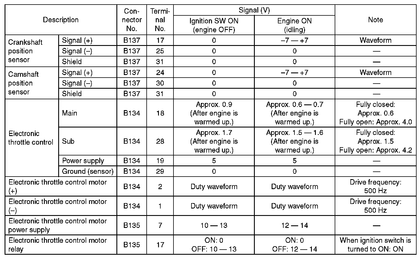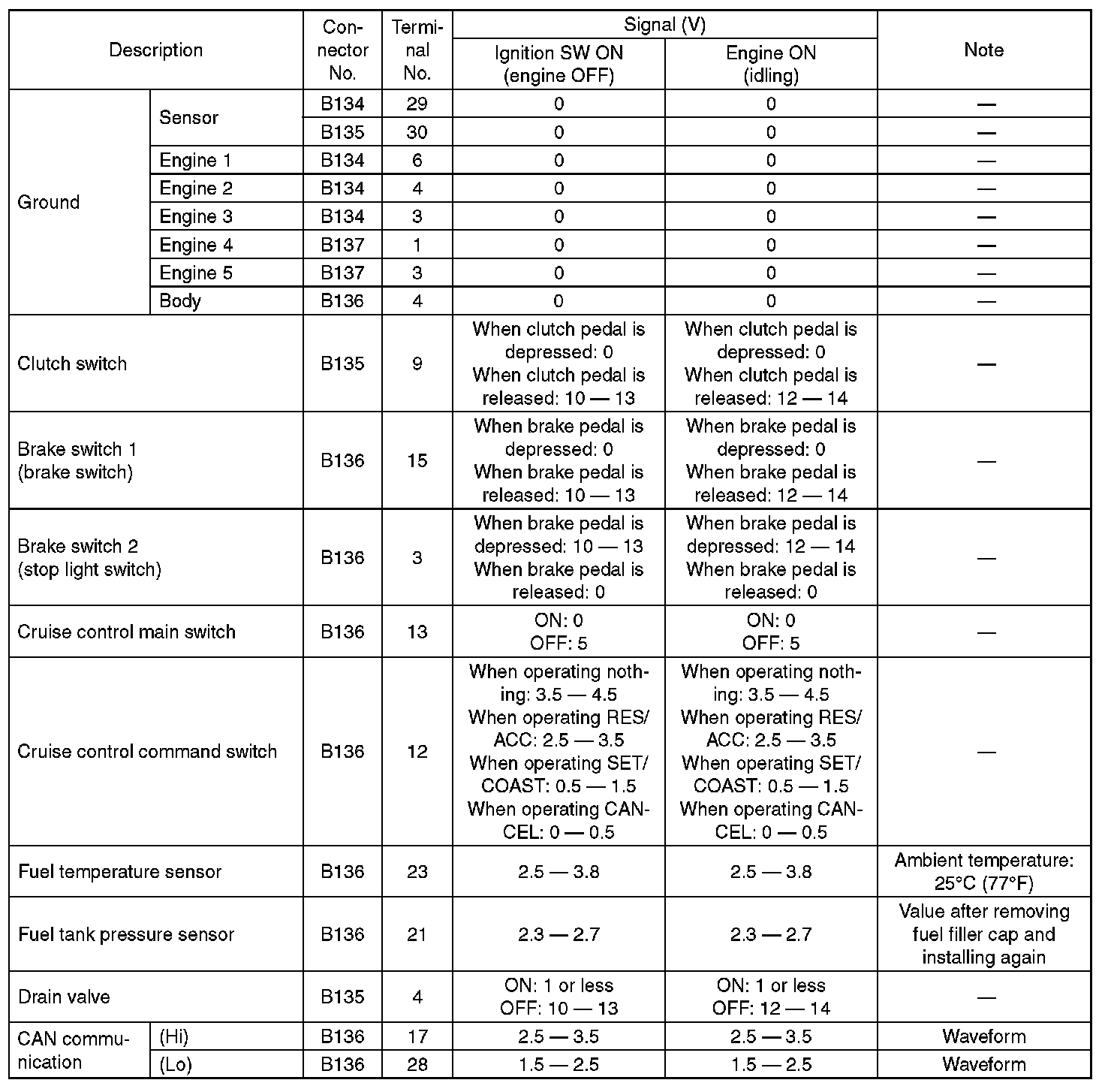 Pinout Values and Diagnostic Parameters