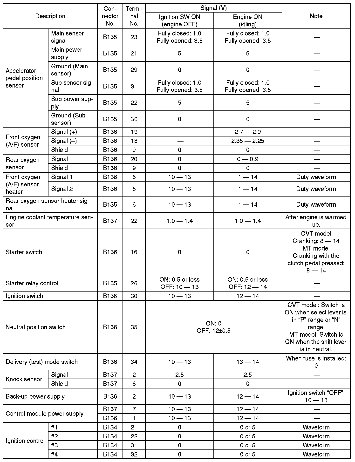 Engine Control Module (ECM) I/O Signal