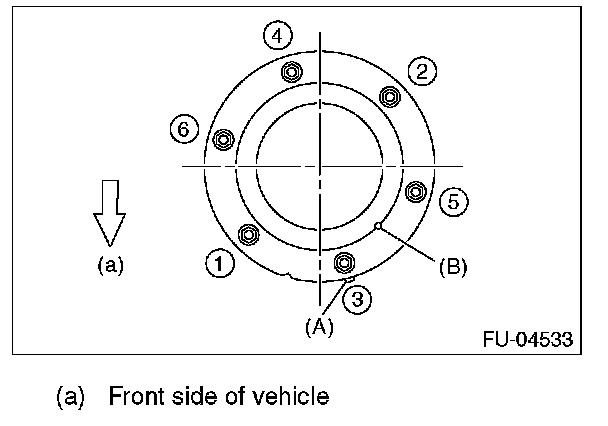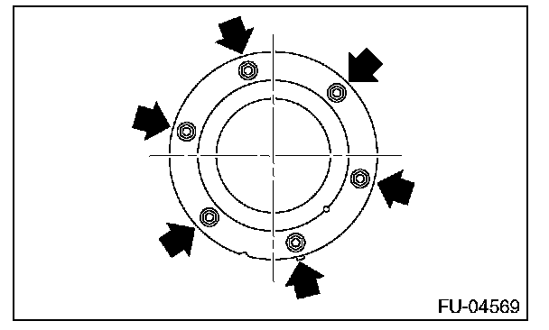 - After tightening the bolts to the specified torque in the order indicated in the figure, install the fuel sub level sensor protector.