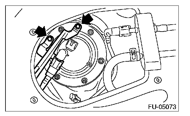 9. Remove the nuts securing the fuel sub level sensor upper plate to the fuel tank and remove the fuel sub level sensor upper plate.