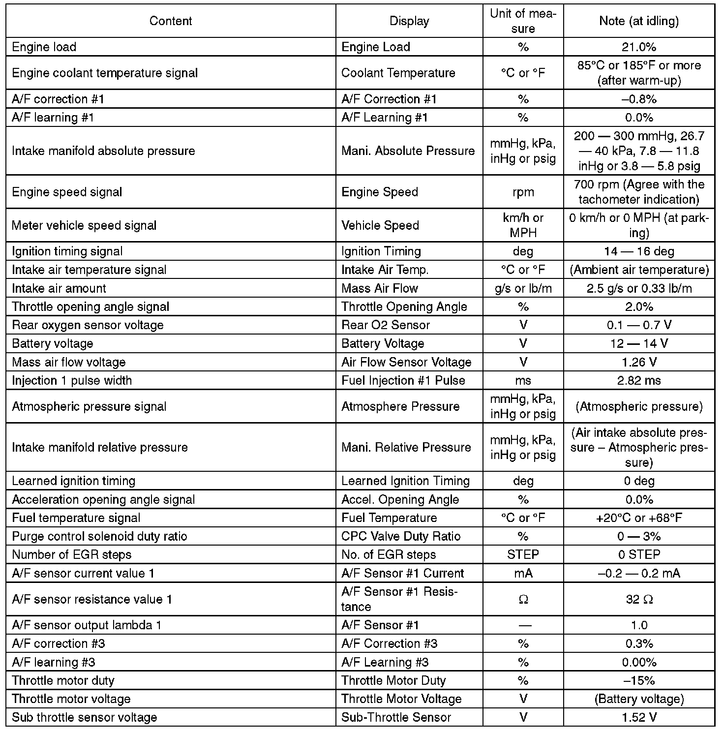 - *: For models without cruise control, the brake switch signal does not change.