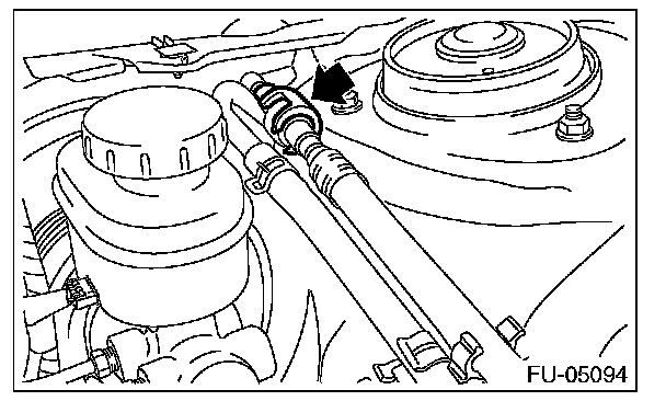3. Disconnect the quick connector of the fuel delivery hose by pushing the ST in the direction of the arrow.