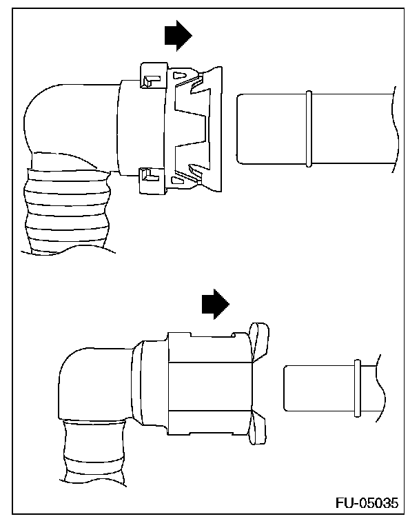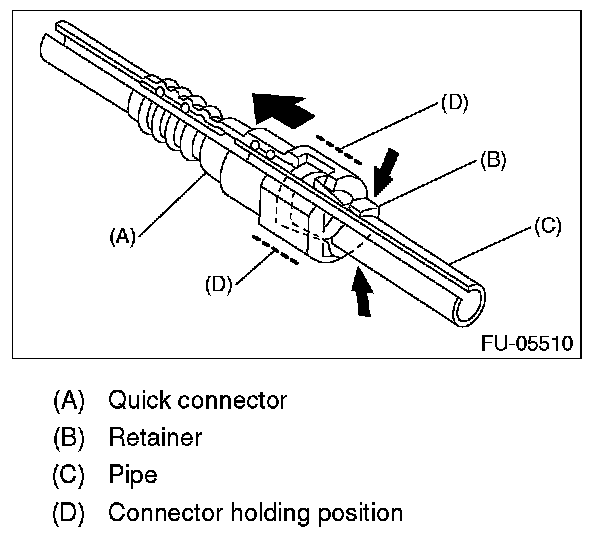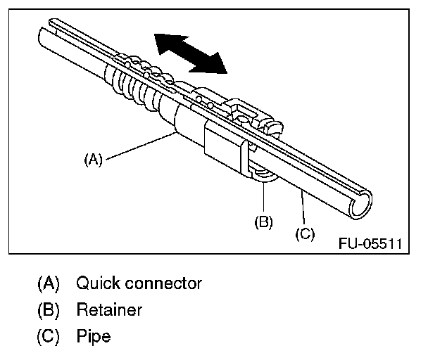 1. Push the retainer in the direction of the arrow, disconnect the quick connector from pipe.