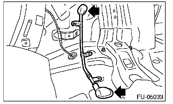 4. In the engine compartment, disconnect the fuel delivery hoses (A) and evaporation hose (B).