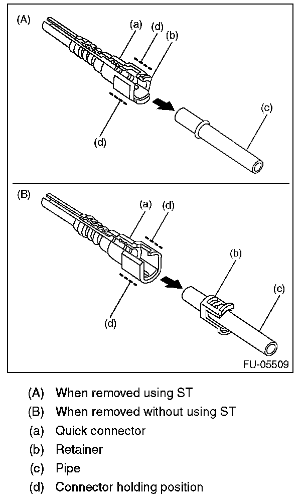 1. Attach ST to the pipe and push ST in the direction of arrow mark to disconnect the quick connector.