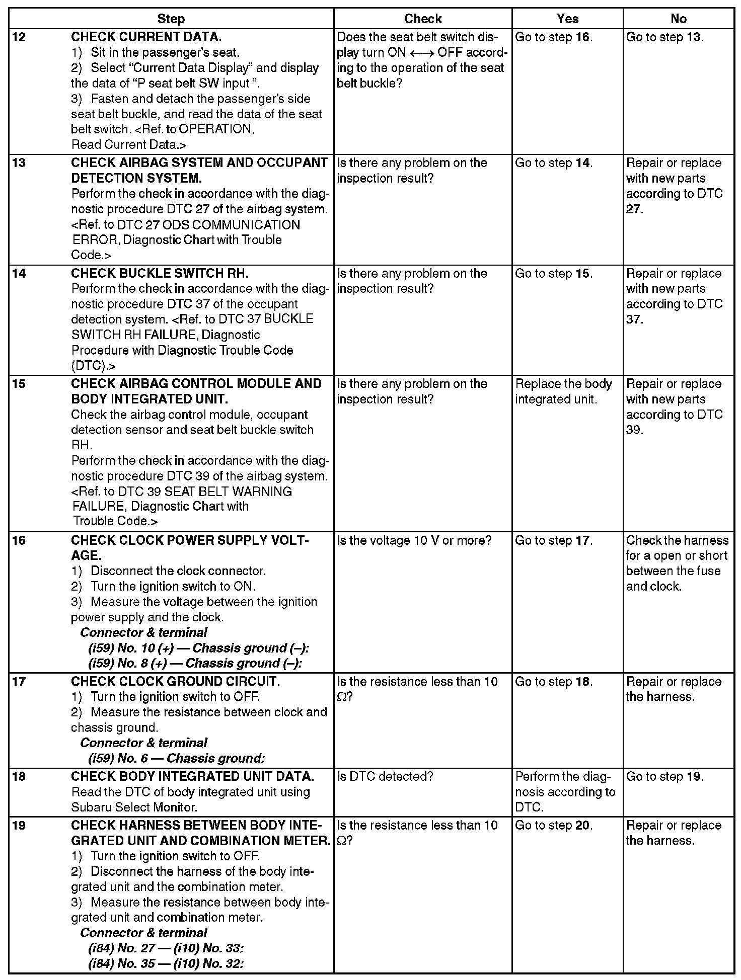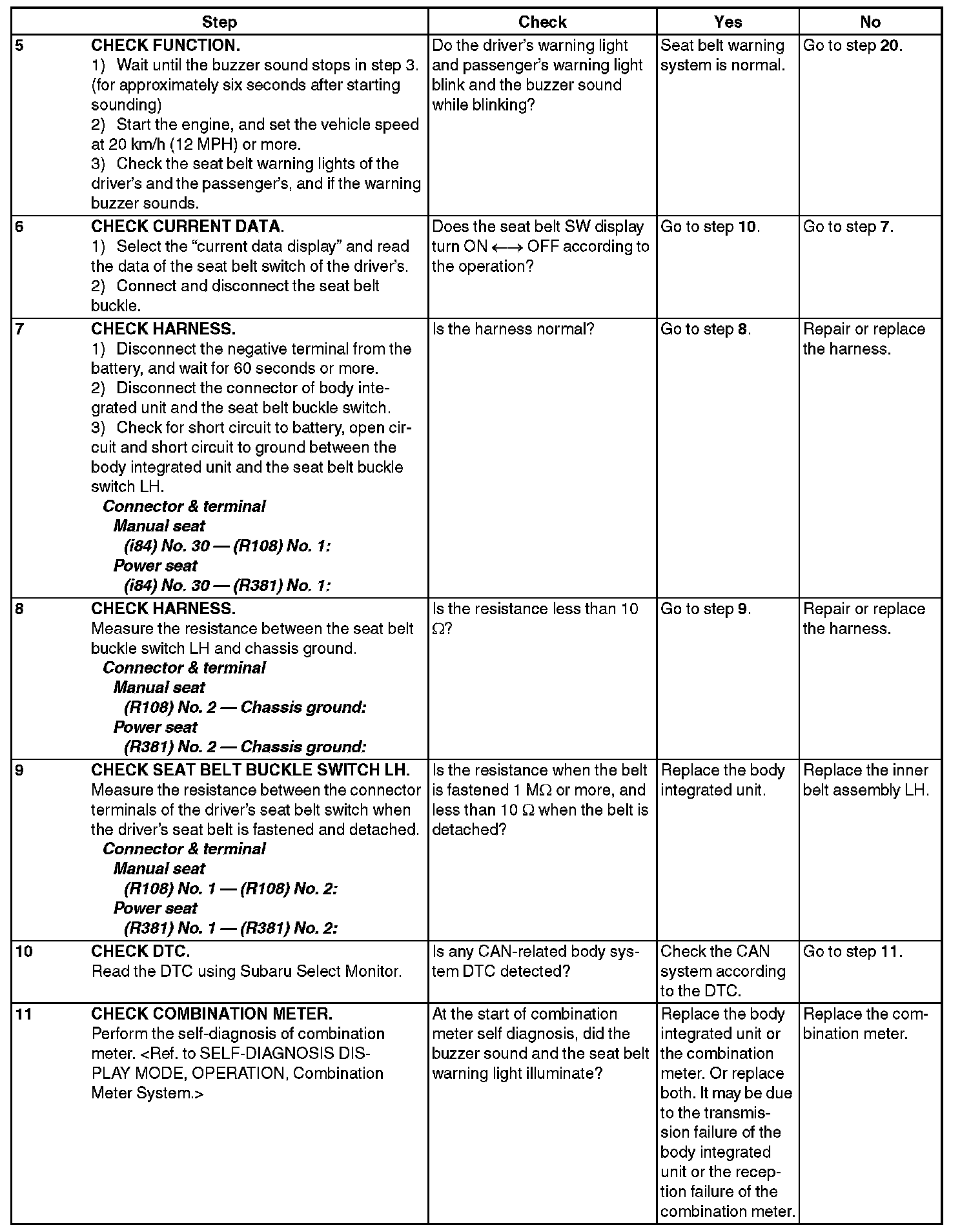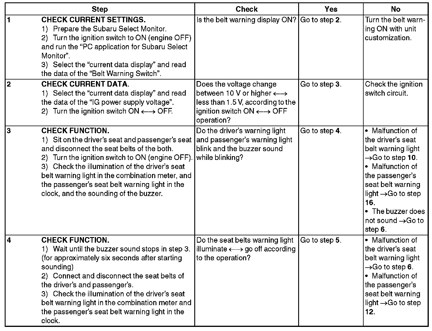 SEAT BELT WARNING SYSTEMINSPECTION
