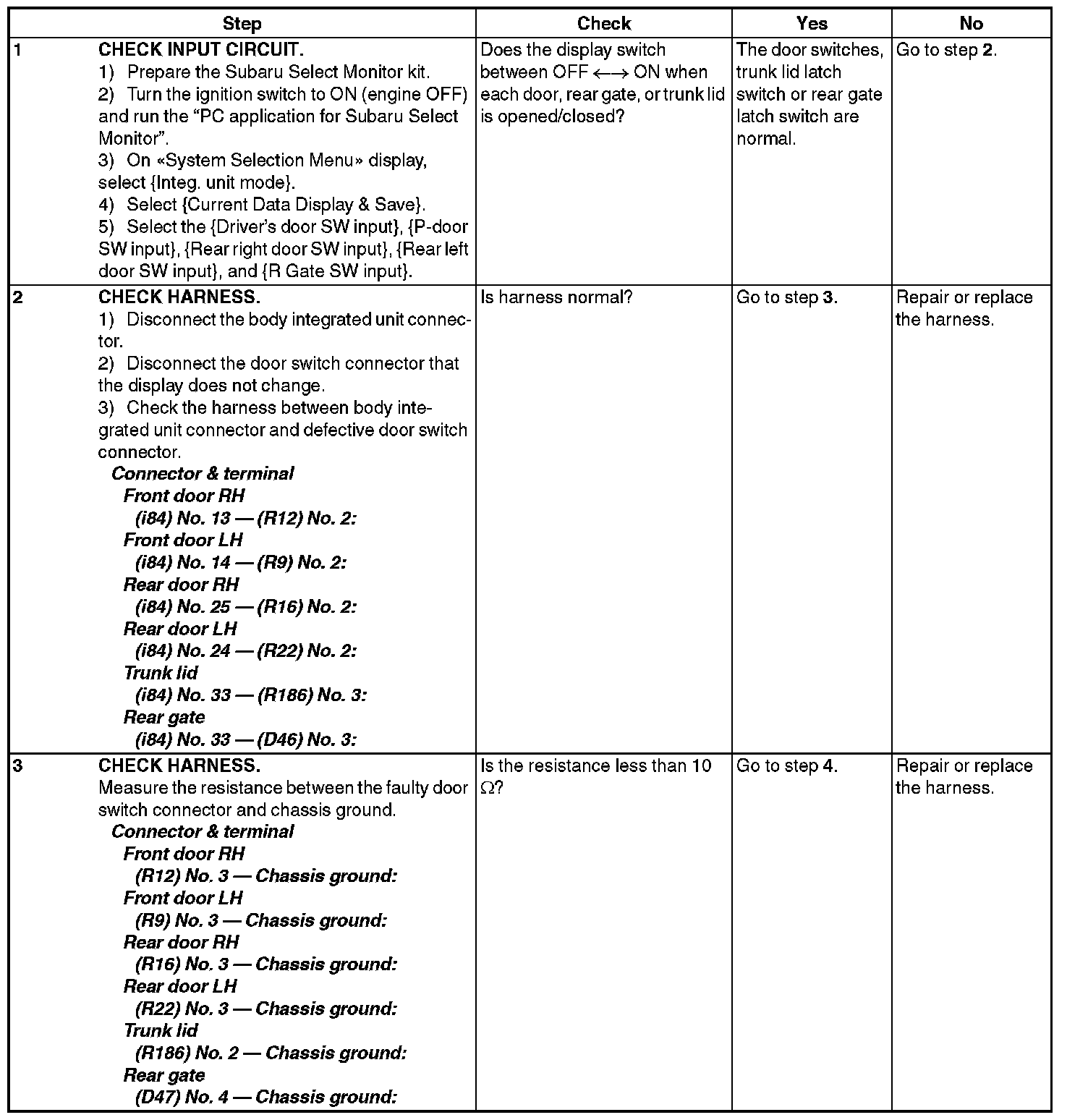 CHECK DOOR SWITCH