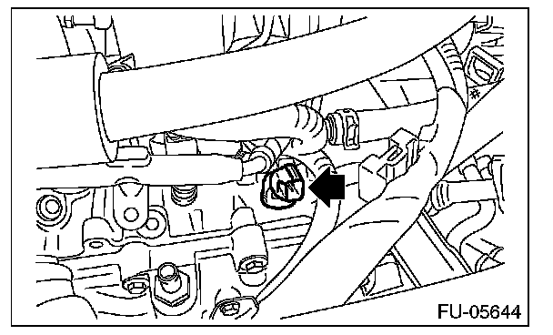 8. Disconnect the connectors of the oil temperature sensor, engine coolant temperature sensor and intake oil flow control solenoid valve LH.