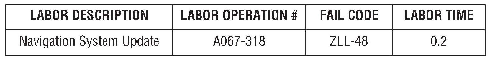 If you encounter a customer complaint with any of the three issues listed, there is a Navigation Program (software only) Update Disc now available to correct the symptoms. This update is for the operating system only and does not update the map data in any way.