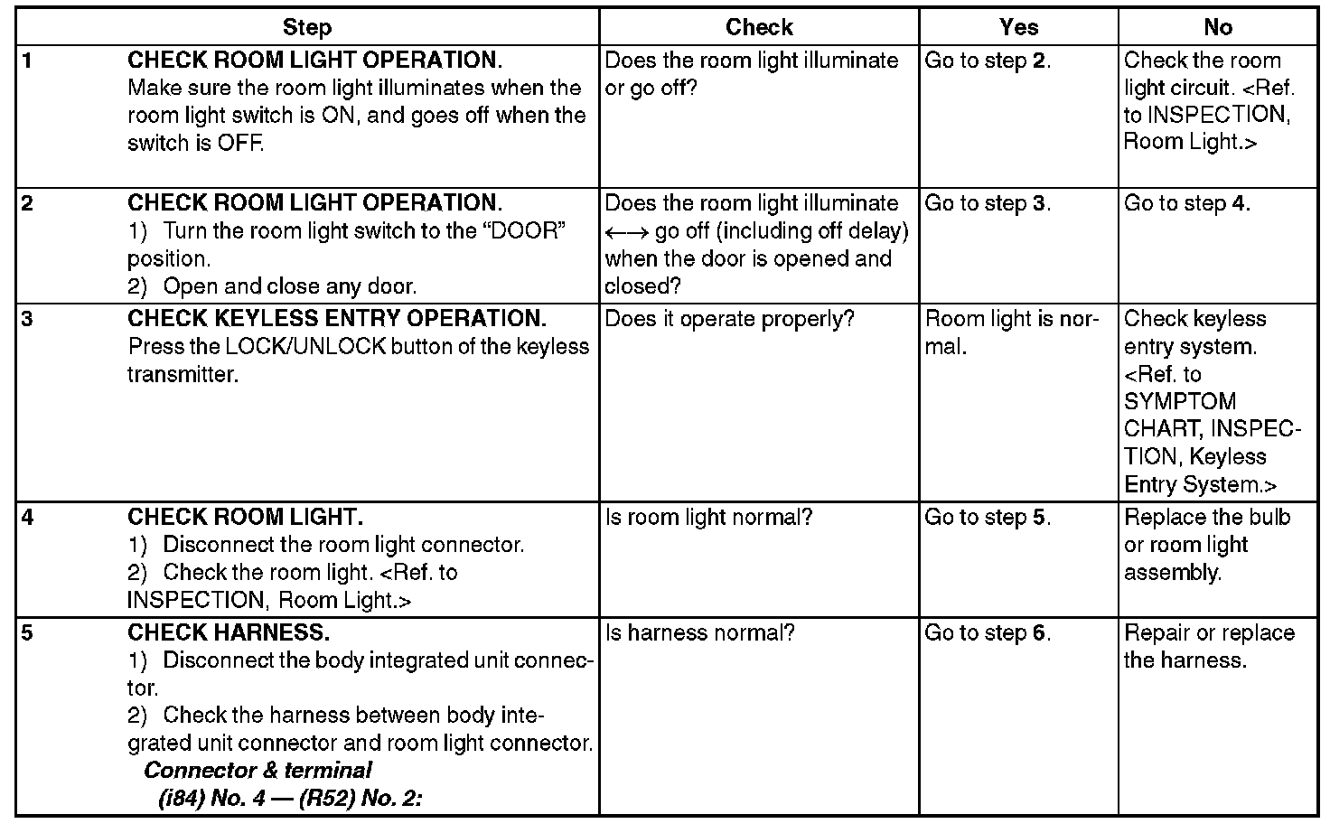 Check Room Light Operation