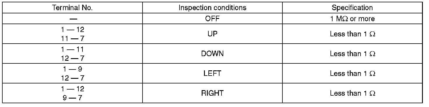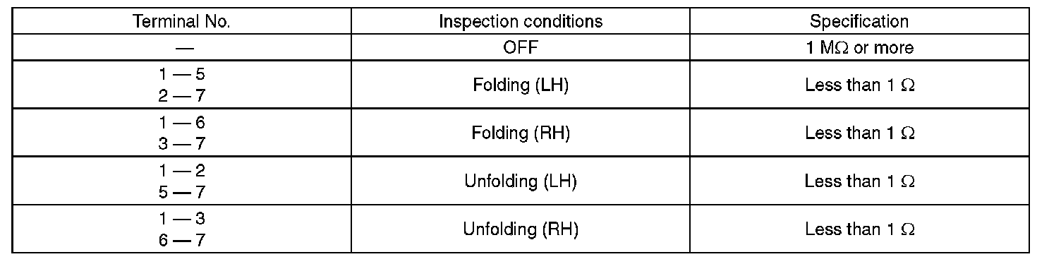 3. Replace the remote control mirror switch if the inspection result is not within the standard value.