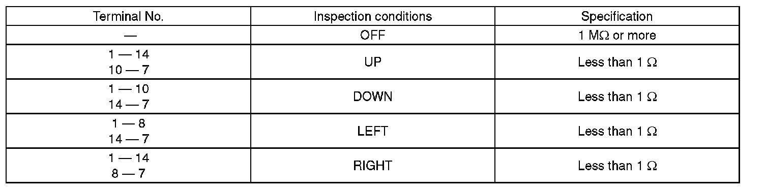 2. Check the resistance between remote control mirror switch terminals.