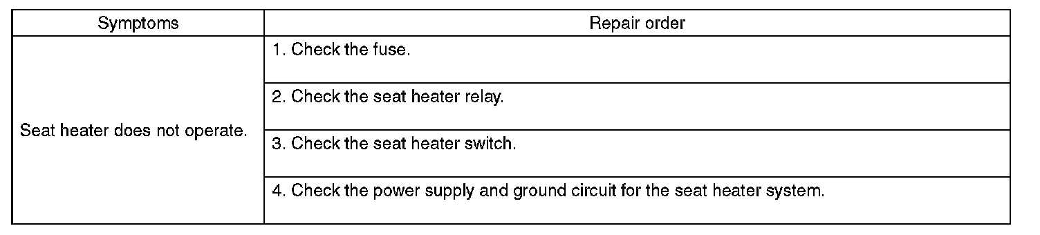 Refer to "Seat Heater System" in the wiring diagram. Ref. to, WIRING DIAGRAM, Seat Heater System.] Diagrams