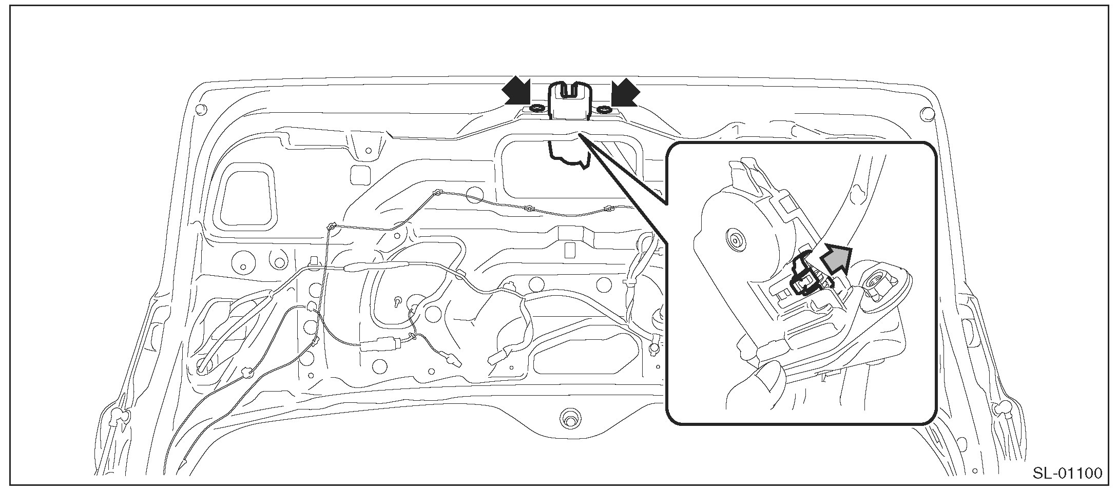 1. Remove the bolts and pull out the rear gate latch & actuator assembly to the vehicle front.