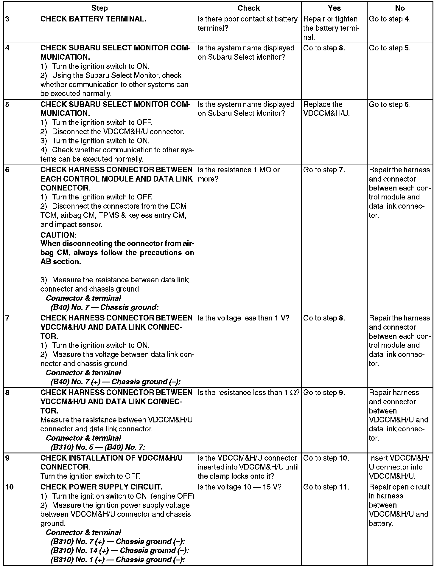 ^ If VDC and Subaru Select Monitor cannot communicate, check the communication circuit.
