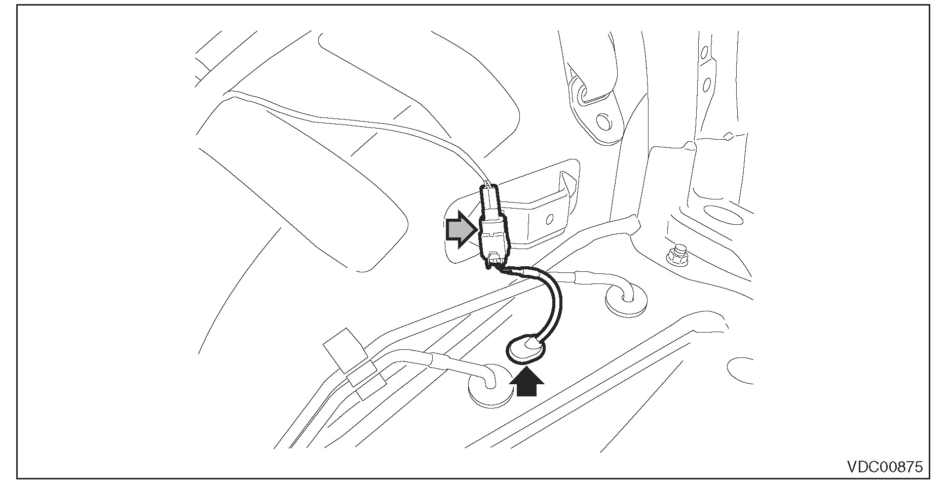 ^ Leave the sensor harness clamp (white arrow) on the vehicle side.