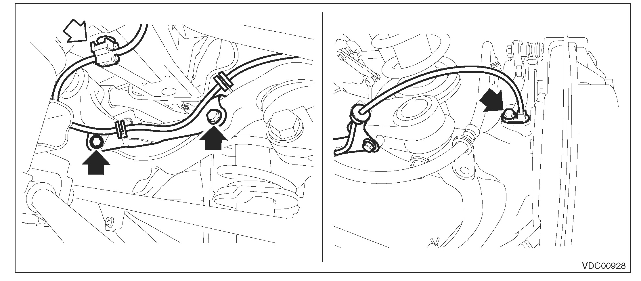(3) Remove the harness clamp and bolts, and remove the rear ABS wheel speed sensor from the rear axle housing.
