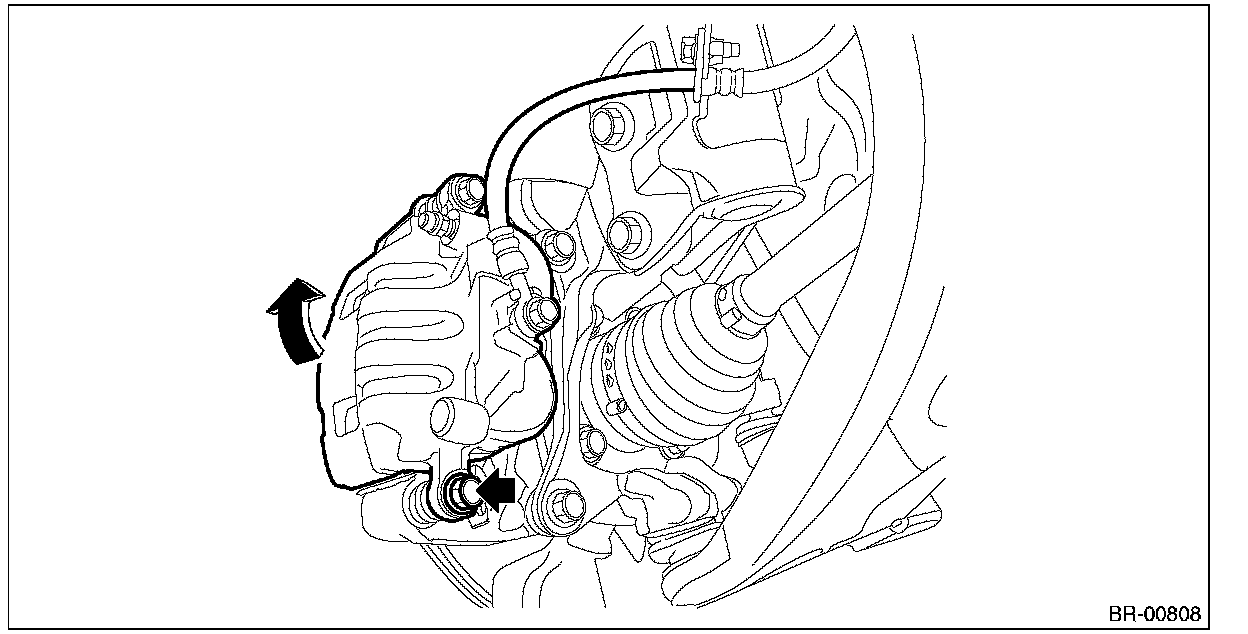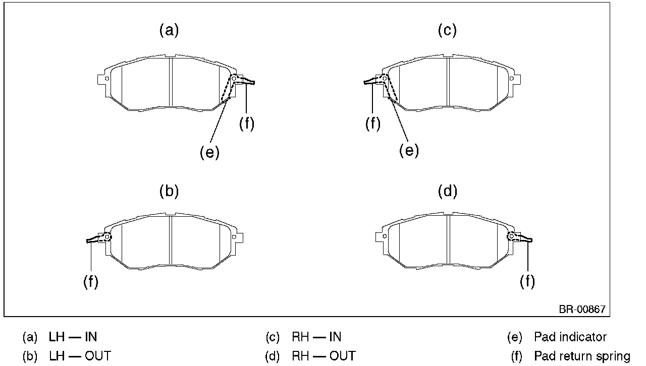 ^ If the pad return spring is deformed or damaged, replace the brake pad.