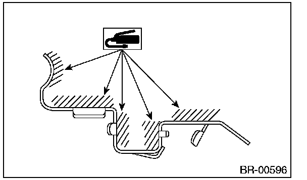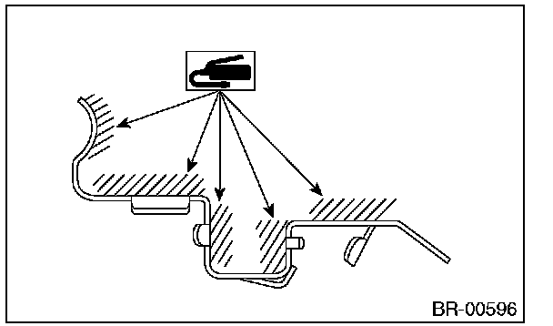 2) Apply a thin coat of Molykote M7439 (Part No. 003602001) or grease contained in the pad kit to the pad clip.
