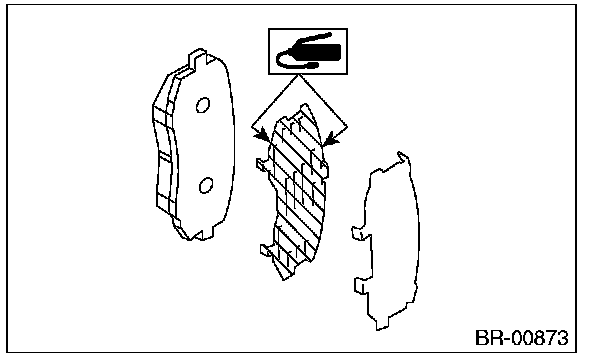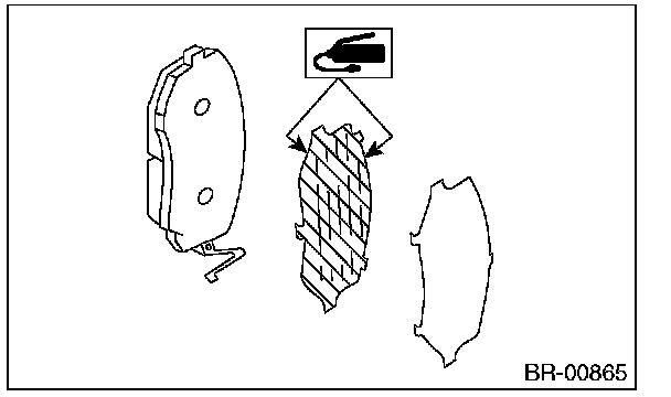 3) Apply a thin coat of Molykote AS880N (Part No. K0777YA010) or grease contained in the pad kit to both surfaces of the pad and inner shim.