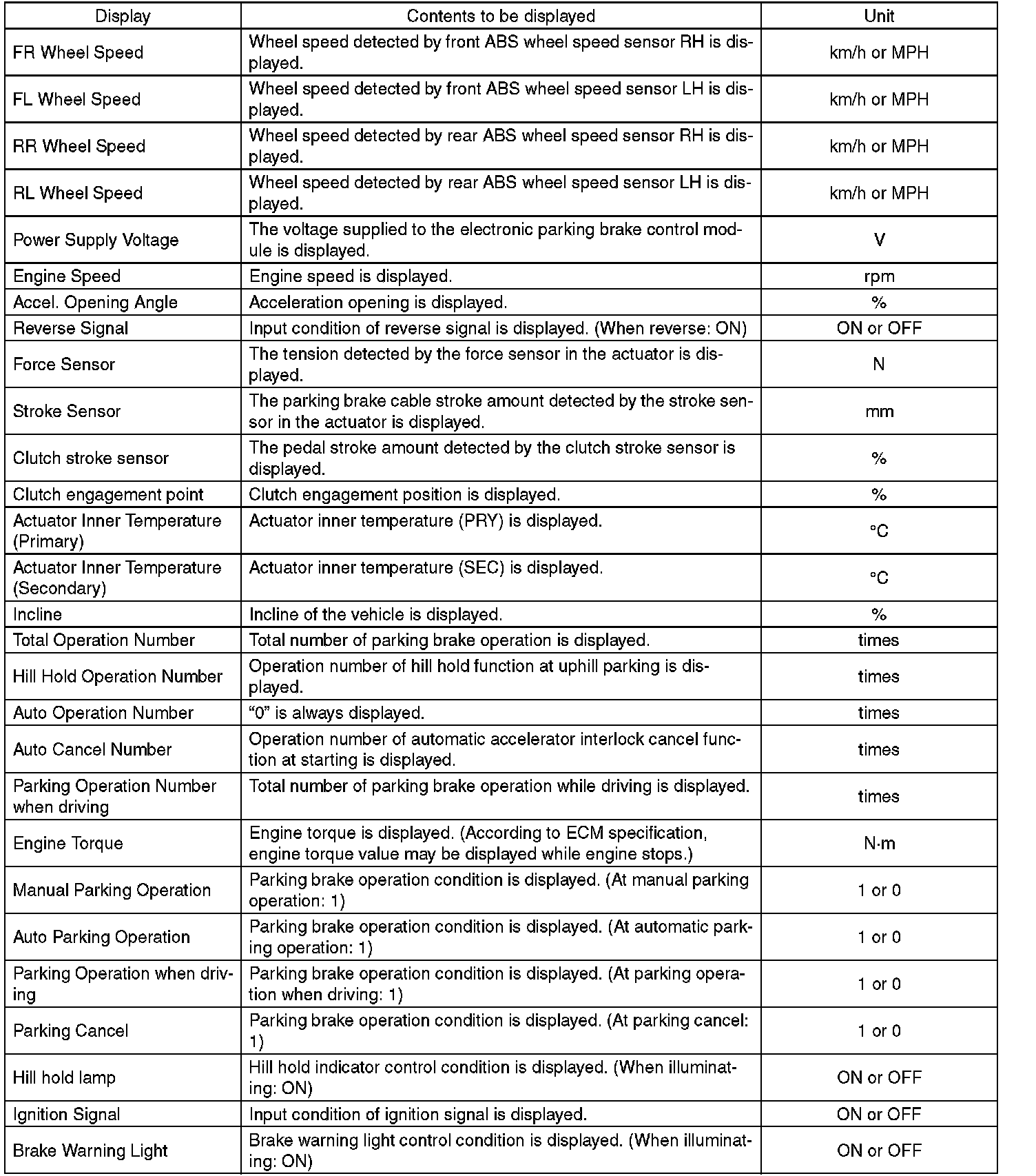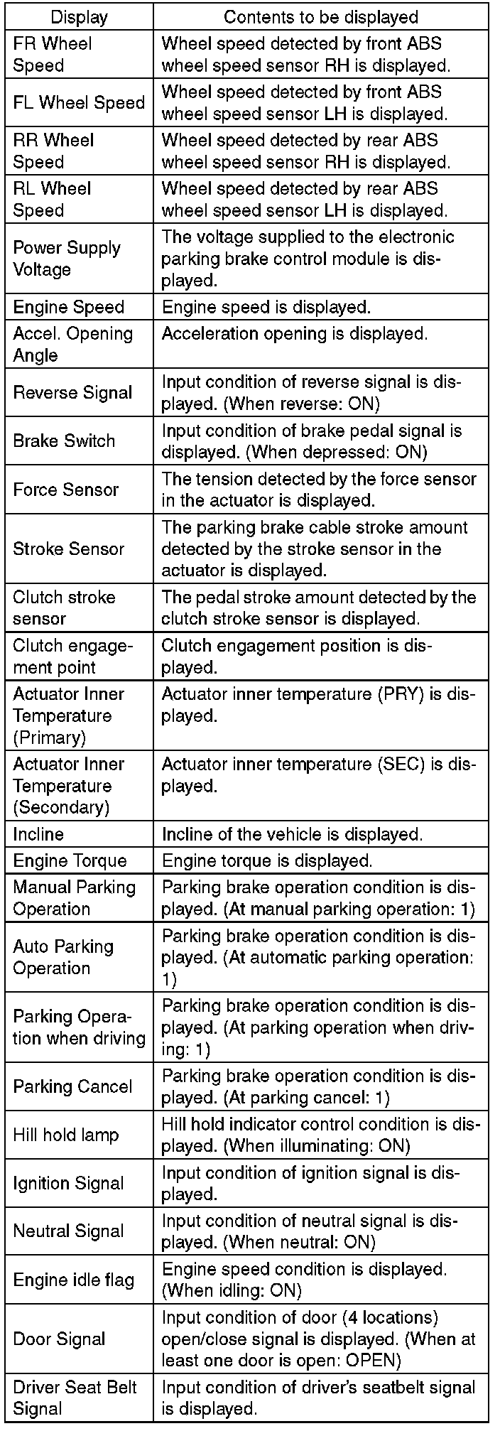 ^ This function can be used for replacement parts of the electronic parking brake control module.