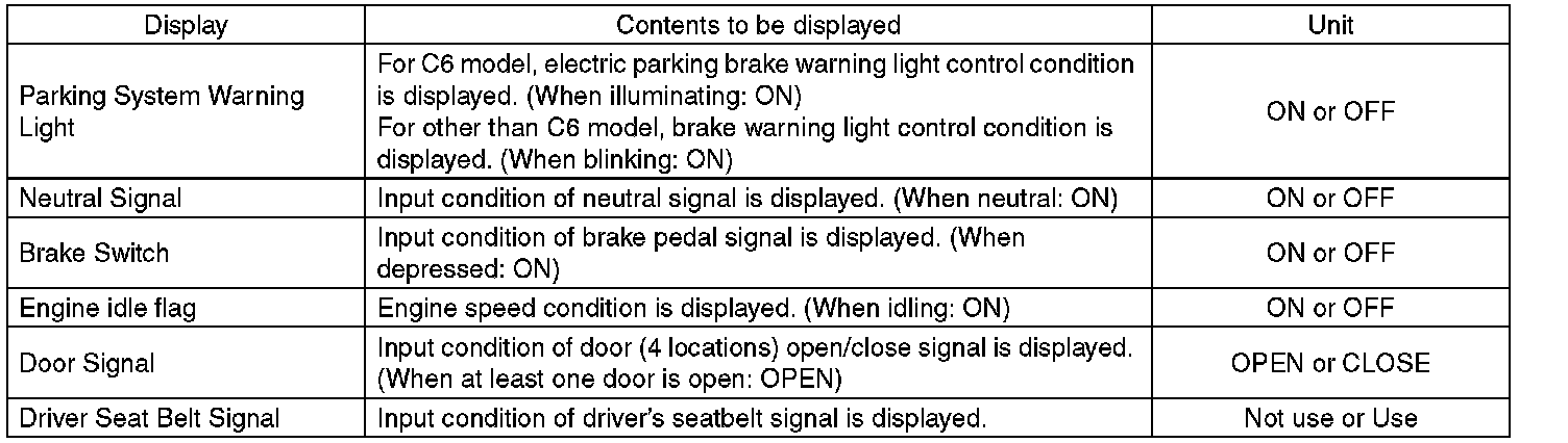 ^ After replacing the parts above, if the calibration of the clutch sensor has not yet been performed, "Clutch Sensor" DTC will be detected. At this time, the electronic parking brake warning light illuminates on C6 model, or the brake warning light blinks on models other than C6 model.