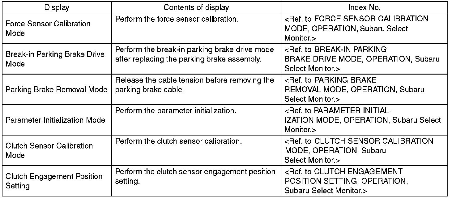 ^ Subaru Select Monitor is required for the parking brake removal mode.