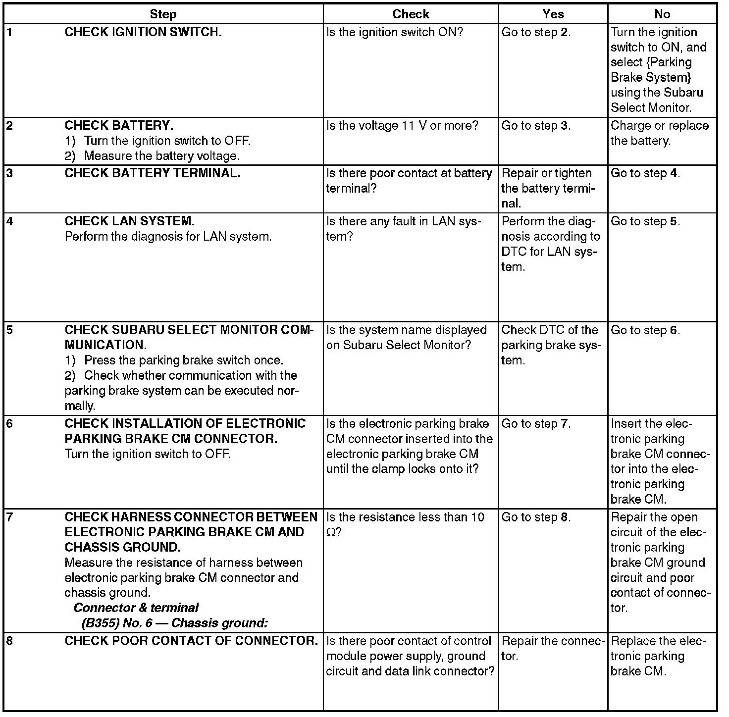 ^ If communication is not possible between the electronic parking brake control module and the Subaru Select Monitor, check the communication circuit.
