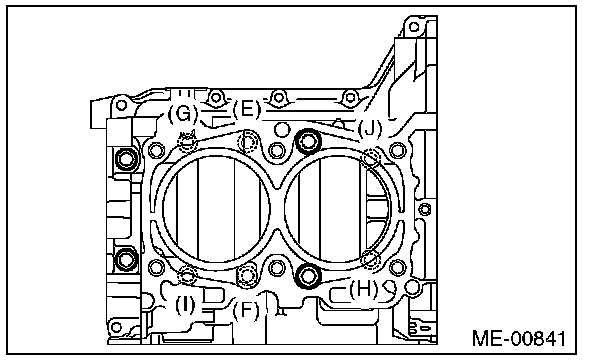 10) Tighten the RH side cylinder block connecting bolts (E - J) further in alphabetical order.