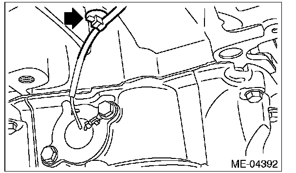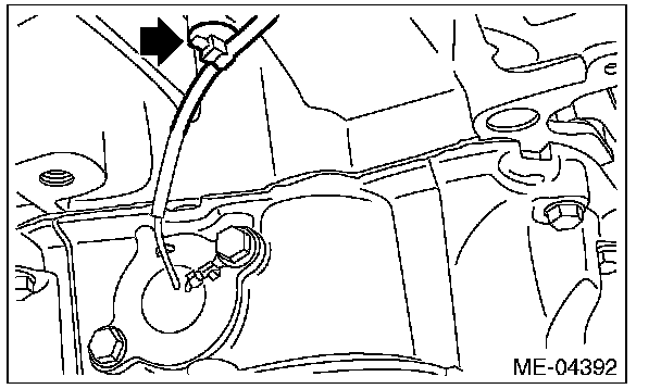 18) Remove the clip holding the oil level switch harness from cylinder block.