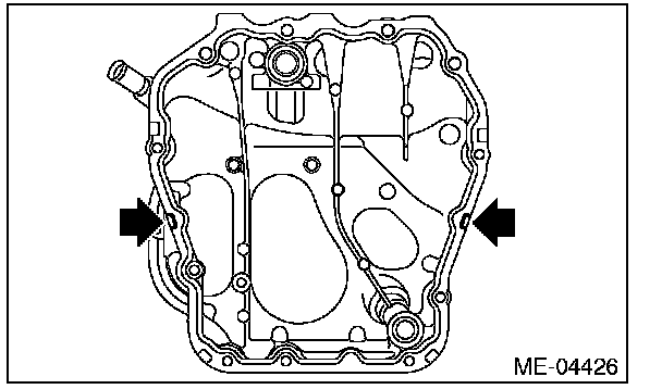 ^ Before installing the oil pan, clean the mating surface of oil pan and cylinder block.
