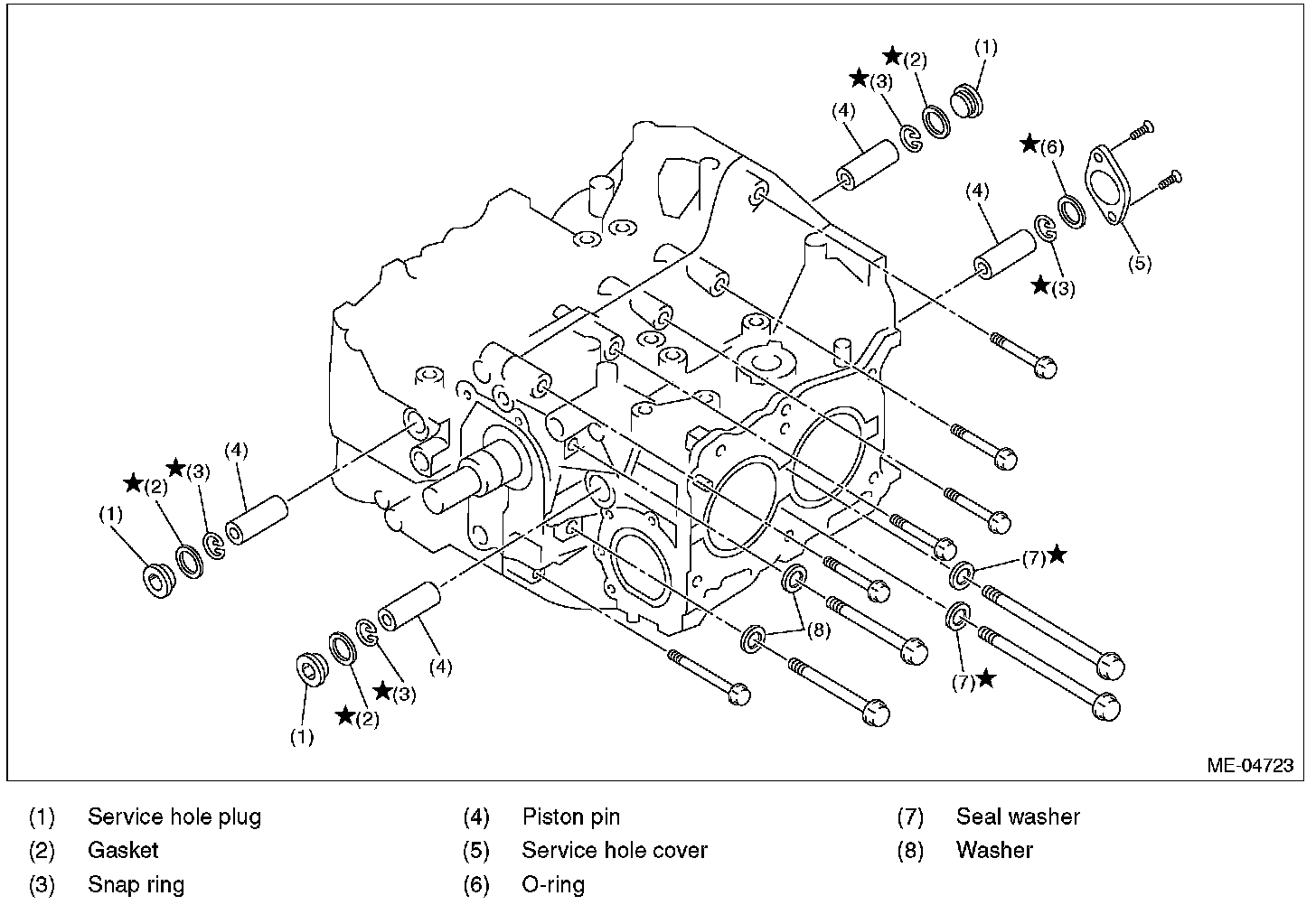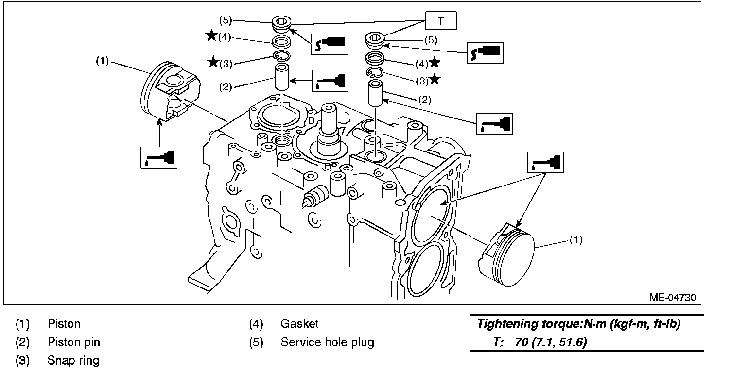 (3) Apply a thin coat of engine oil to piston pin, and insert the piston pin into piston and connecting rod through service hole.