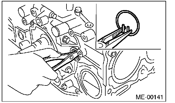 ^ Press the crankshaft bearing at the end opposite to locking lip to remove.