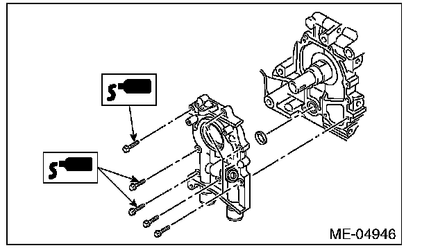 (2) Apply liquid gasket to the mating surfaces of oil pump.