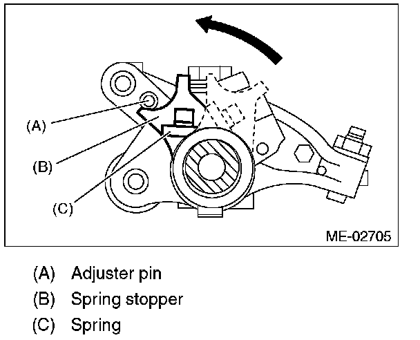 (1) Use the ST to rotate the spring stopper in the direction of the arrow to remove it from adjuster pin.