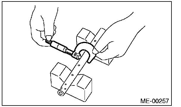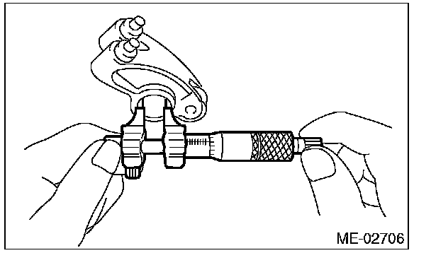 1) Measure the inner diameter of valve rocker arm and outer diameter of valve rocker shaft, and confirm the difference (oil clearance) between the two values.