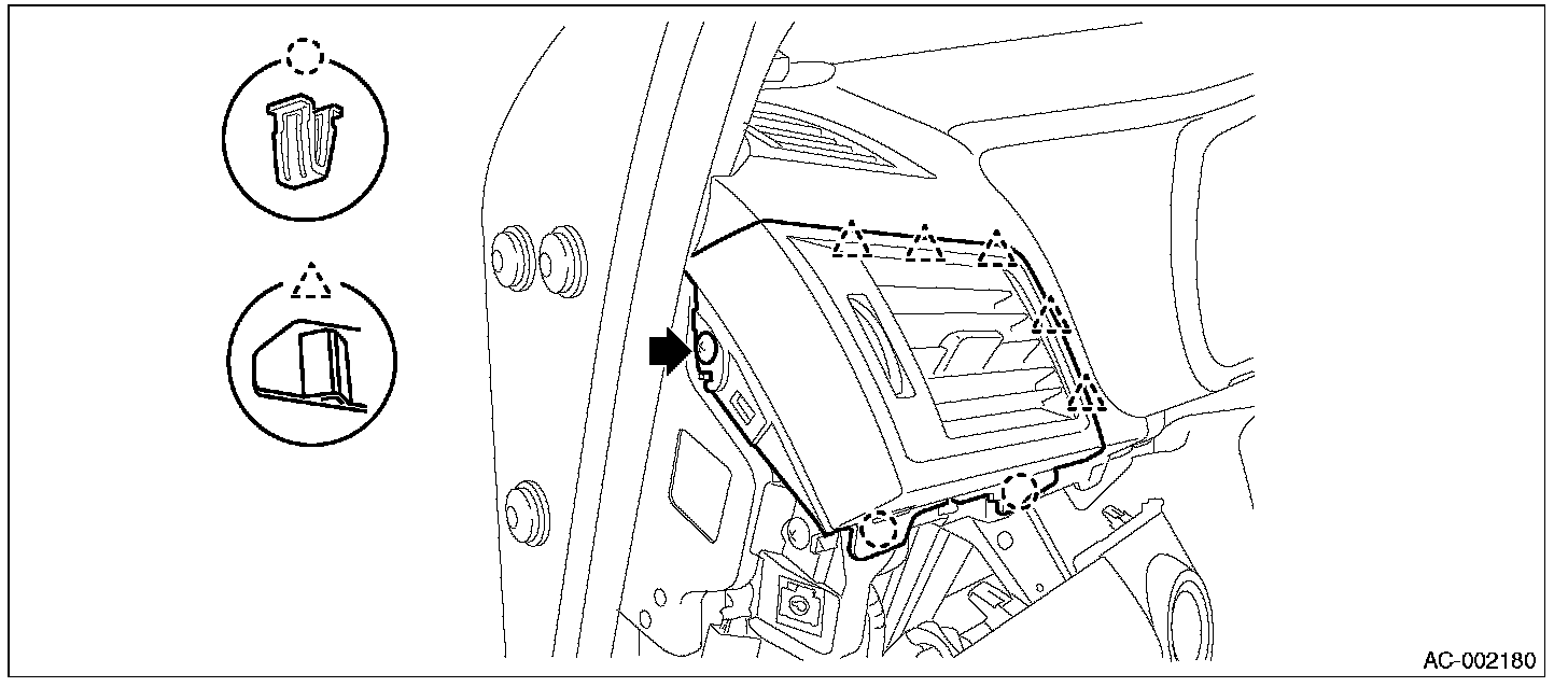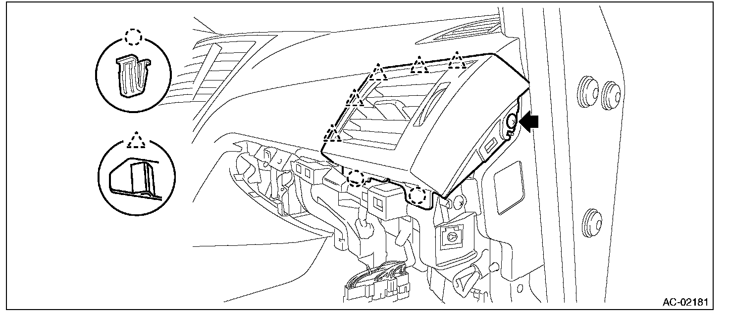 2. Remove the side vent grille assembly LH.
