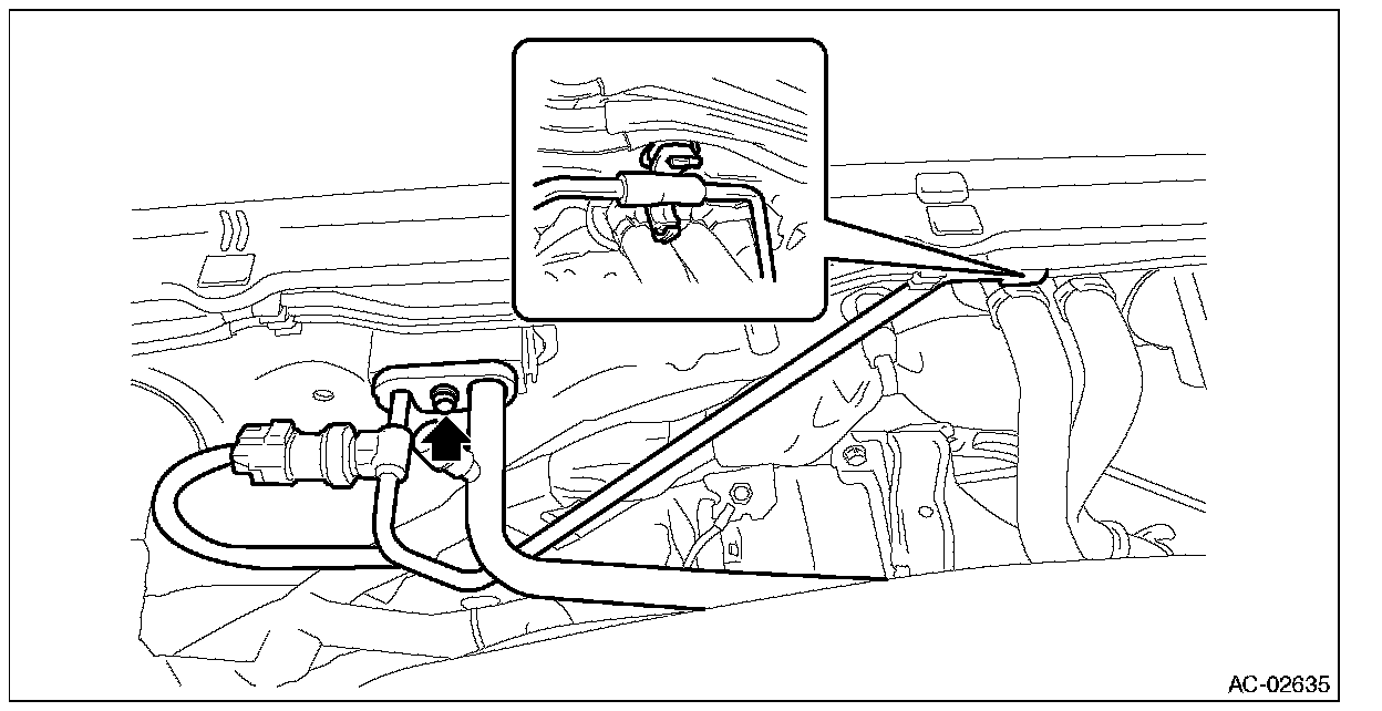 3. Remove the connector and bolts, and remove the high-pressure hose and AC pipe from the expansion valve.