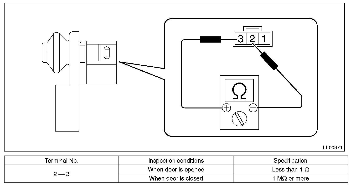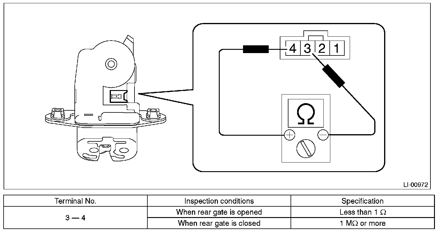 3. If the inspection result is not within the standard value, replace the rear gate latch and actuator assembly.