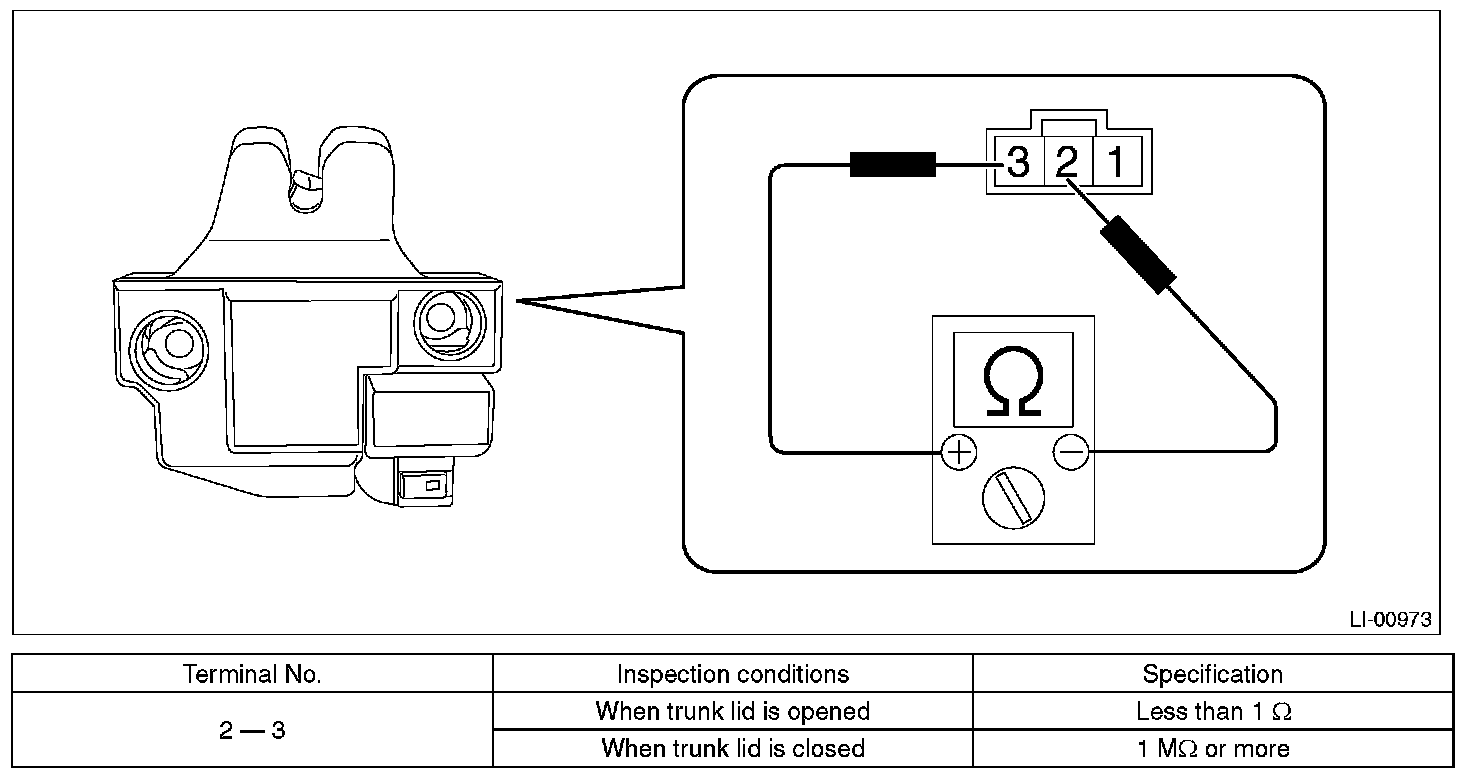 3. If the inspection result is not within the standard value, replace the trunk lid latch and actuator assembly.