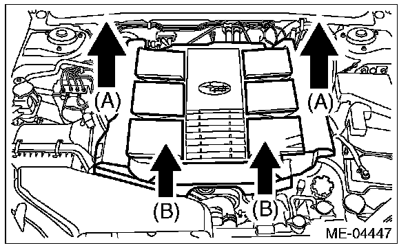 (2) Pull up the two points at the front (B) while moving them forward.