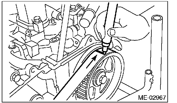 ^ Be careful not to let oil, grease or coolant contact the timing belt. Remove quickly and thoroughly if this happens.