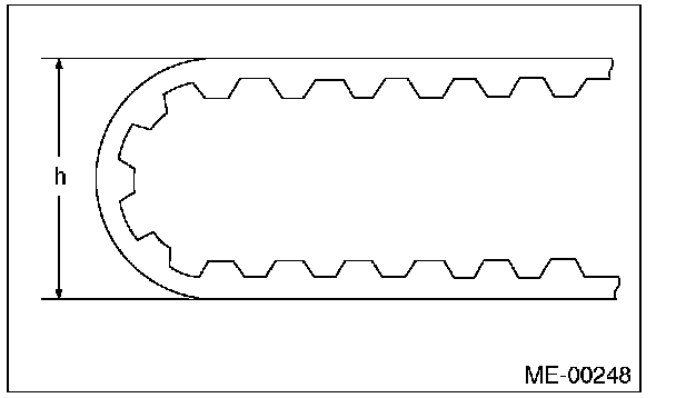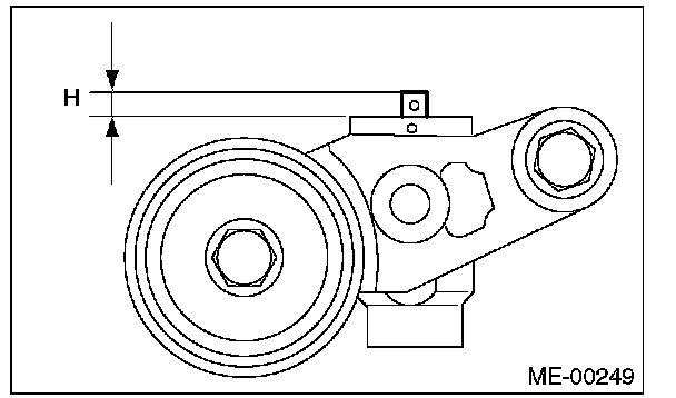 4) Measure the amount of adjuster rod protrusion "H" from the end surface of the cylinder. If it is not within specifications, replace the automatic belt tension adjuster assembly with a new part.
