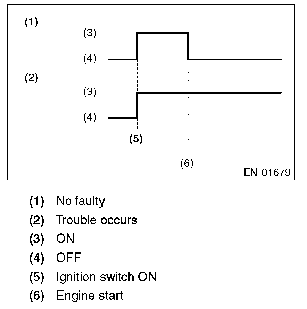 2. After the engine starts, malfunction indicator light blinks in a cycle of 0.5 Hz. (During diagnosis)