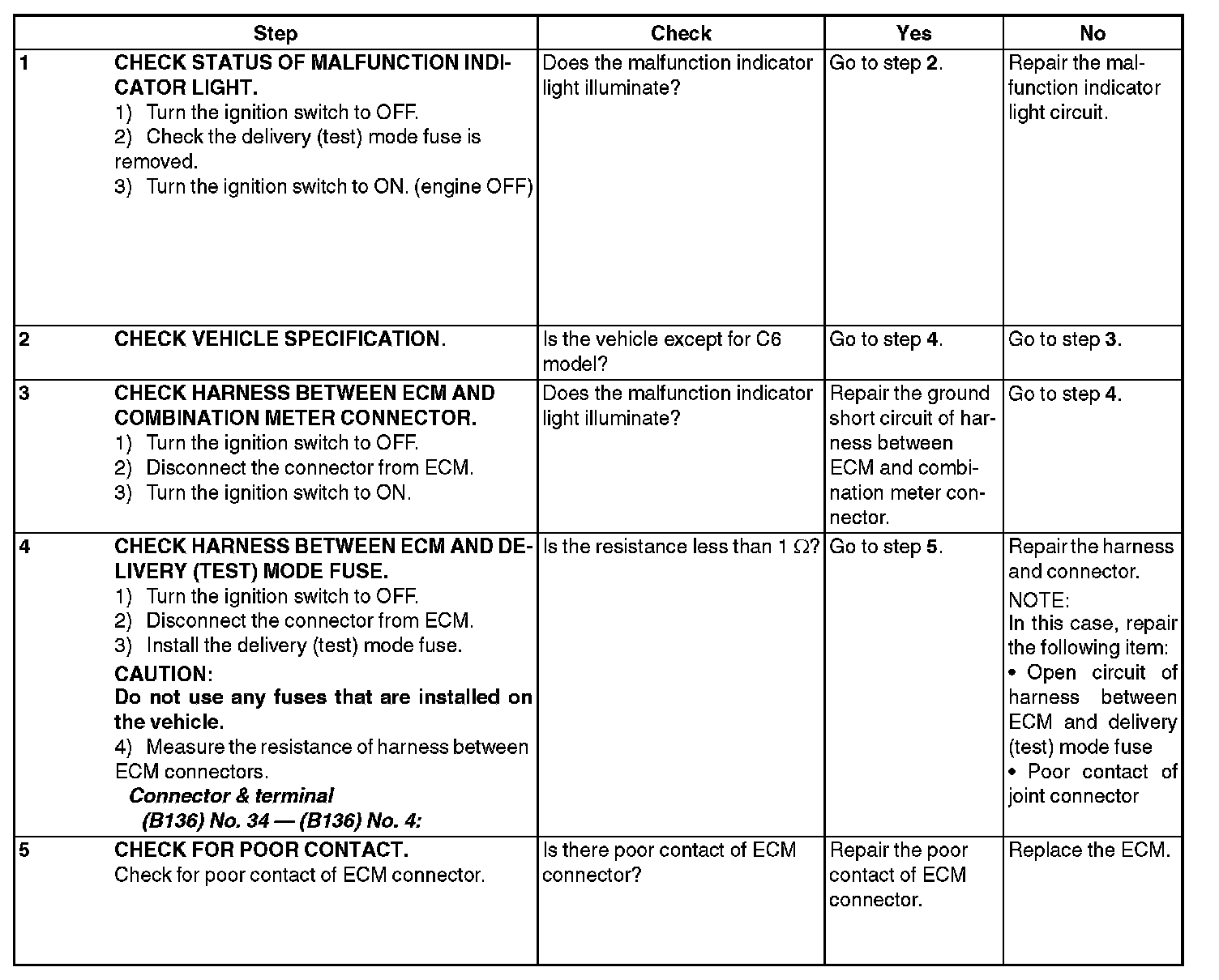 MALFUNCTION INDICATOR LIGHT DOES NOT BLINK
