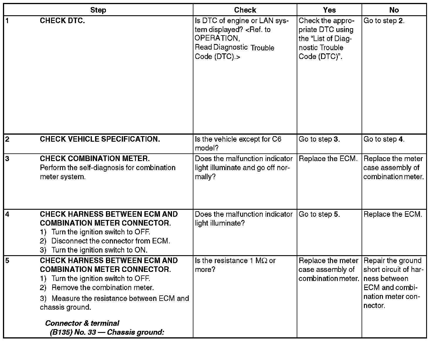 Although malfunction indicator light comes on when the engine runs, DTC is not shown on the Subaru Select Monitor or general scan tool display.