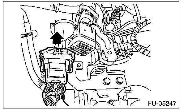 7) Slide the engine harness connector in the direction of the arrow and remove it from the rear engine hanger.